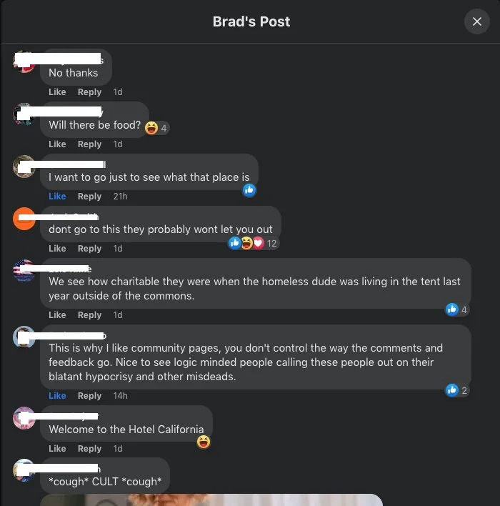 To Brad’s credit, he did not delete the comments Dawn Blue and I made. From a Damage Control perspective, that probably would not have sat well with the residents in those groups.