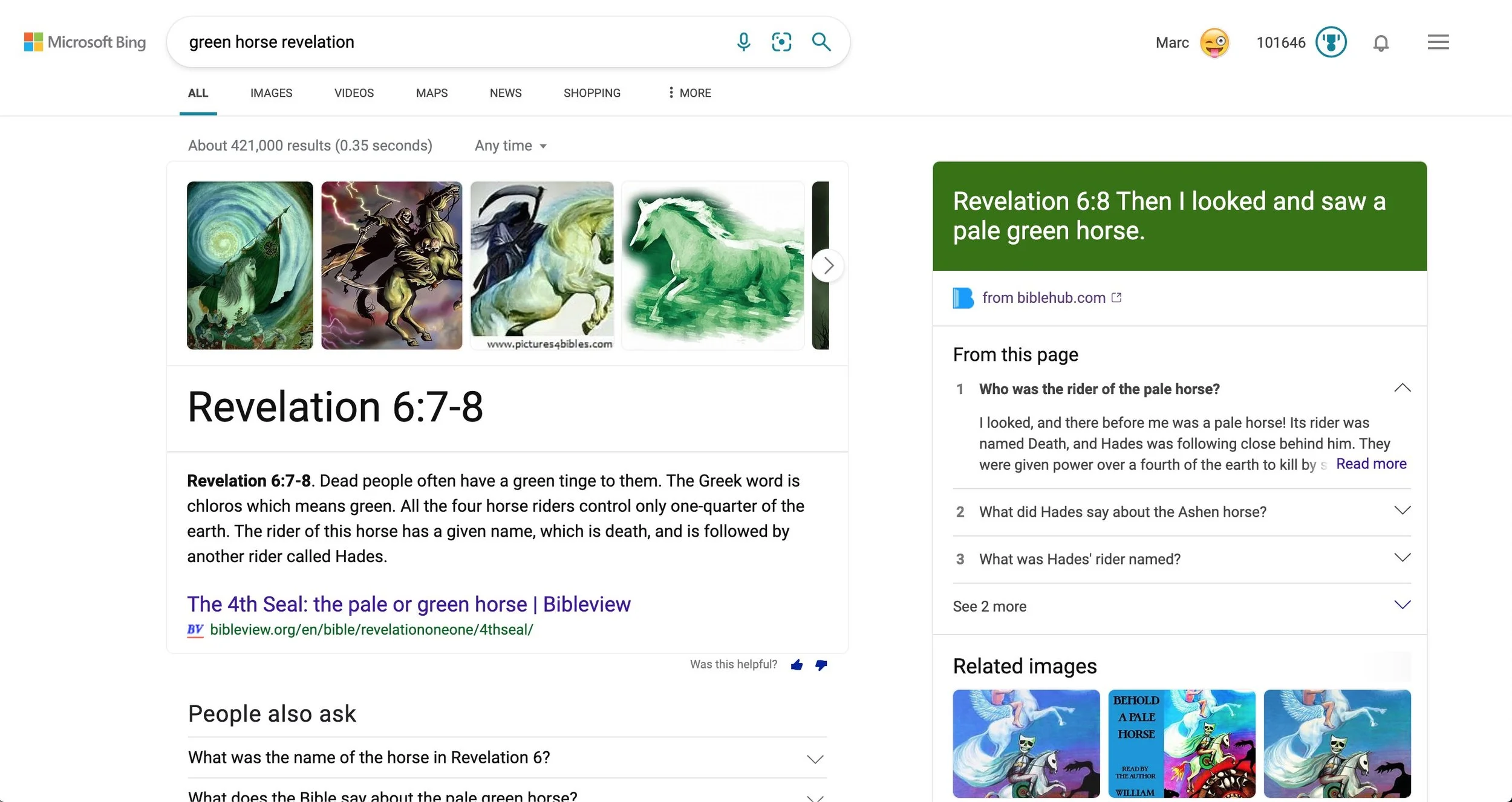 When you search "green horse revelation," you can find page after page of websites and images.